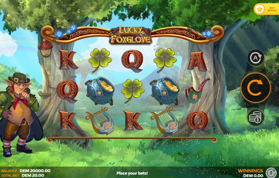Overview of the game interface: Lucky Foxglove is a thrilling online casino slot game that offers a user-friendly interface with vibrant graphics and engaging sound effects. The game features five reels and multiple paylines, providing players with ample opportunities to win big.